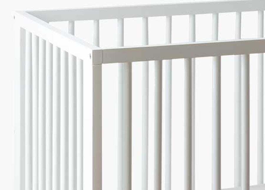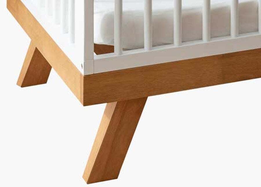 With a classic white-and-wood theme, this cot also boasts a graceful Scandinavian appeal that makes it completely on-trend!